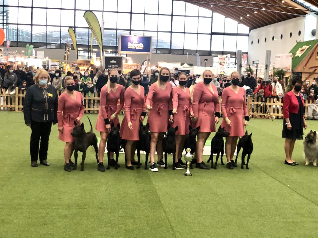 internationale Ausstellung Karlsruhe. Wir haben tolle Hunde und ich habe das beste Team der Welt. Ich danke euch von Herzen! Wir starteten mit 11 Hunden: In der Jugendklasse Nikan, Easy und Ice. In der Zwischenklasse Bär und Quinn. In der offenen Klasse Buzz, Sola, Fire und Roxy. In der Championklasse Kiss und in der Veteranenklasse Oma Ray. In der Paarklasse starteten Buzz und Sola und räumten aus vielen Paaren Platz 2 ab. Mit riesen Stolz präsentierten wir uns in der Zuchtgruppe und sahnten Platz 1 beide Tage ab.