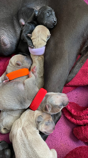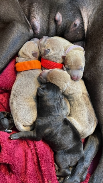 Unsere Welpen sind da! In nicht einmal 1 Std bekam unsere Quinn 5 Welpen. Es sind 1 Rüde und 4 Hündinnen in schwarz und Isabell. Momentan sind alle unsere Welpen vergeben.