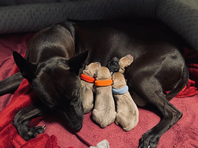 Unser A Wurf ist geboren. Die Geburt verlief reibungslos ud Sunray war einfach nur fantastisch. Wir dürfen 4 Rüden und 2 Hündinnen im neuen Leben begrüßen. Wir sind so stolz und glücklich!