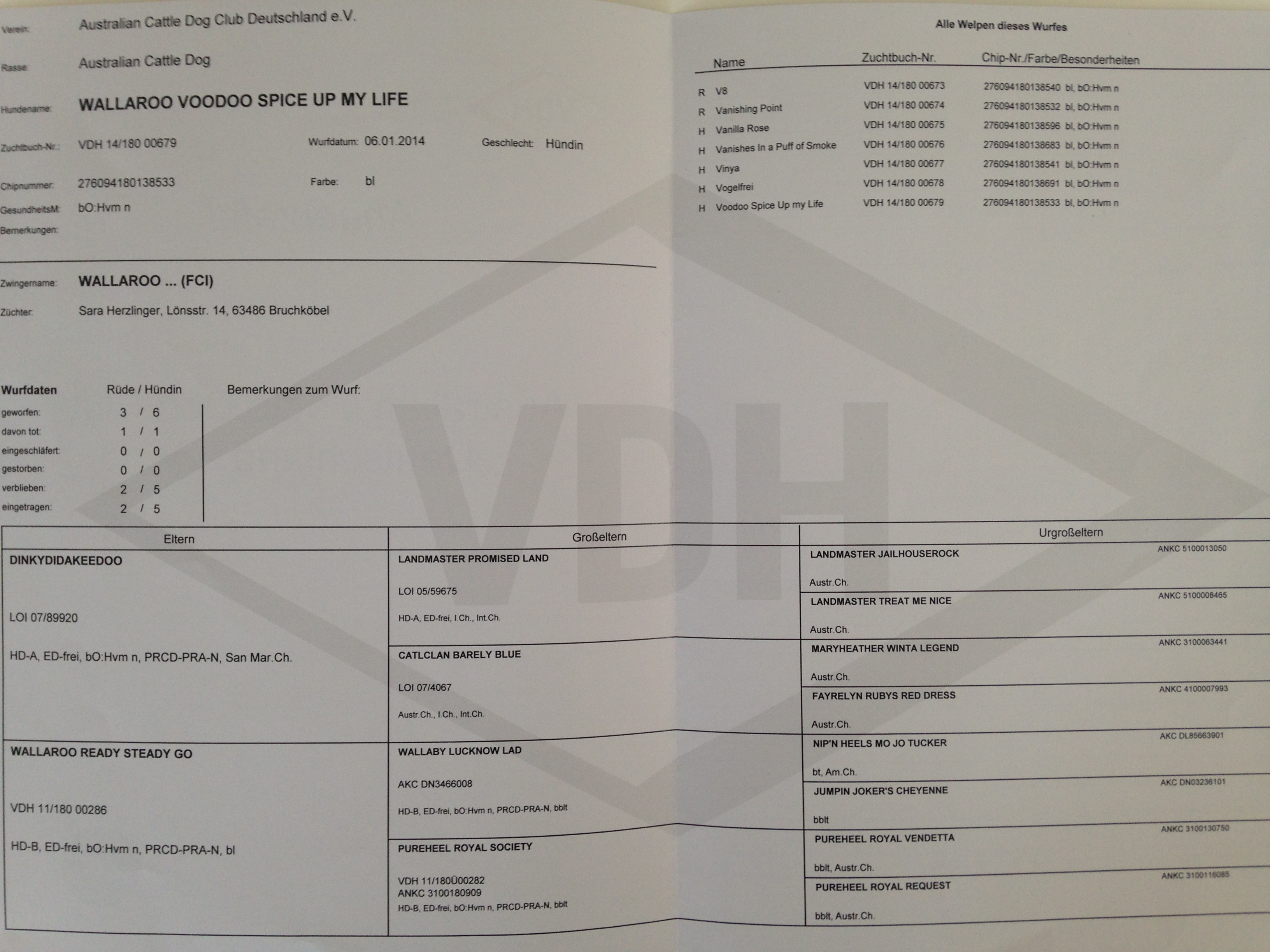 - DISH frei (mit 2,5 Jahren) Voodoos Mutter und auch Tanten und Onkel, sowie 2 Schwestern sind leider DISH betroffen